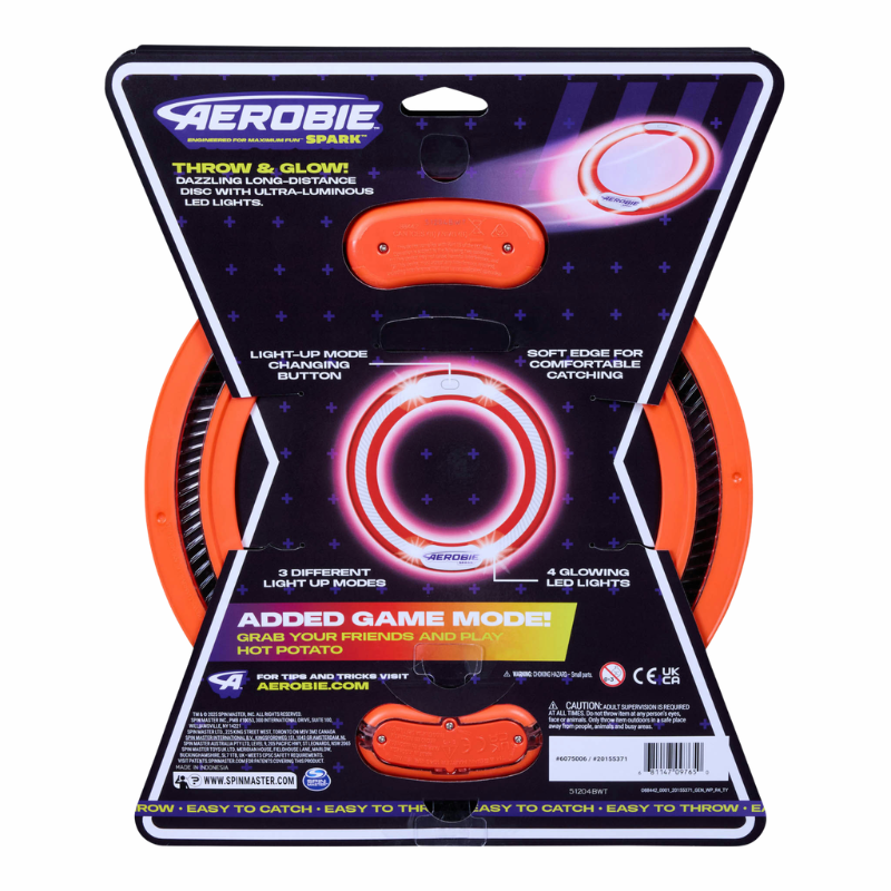 A glowing flying ring zips through the night, leaving a trail of colorful light in its wake! With a soft edge and a playful spin, it swoops, soars, and lands in all sorts of clever catches. As the sky grows dark, this bright little flier keeps the fun shining strong!