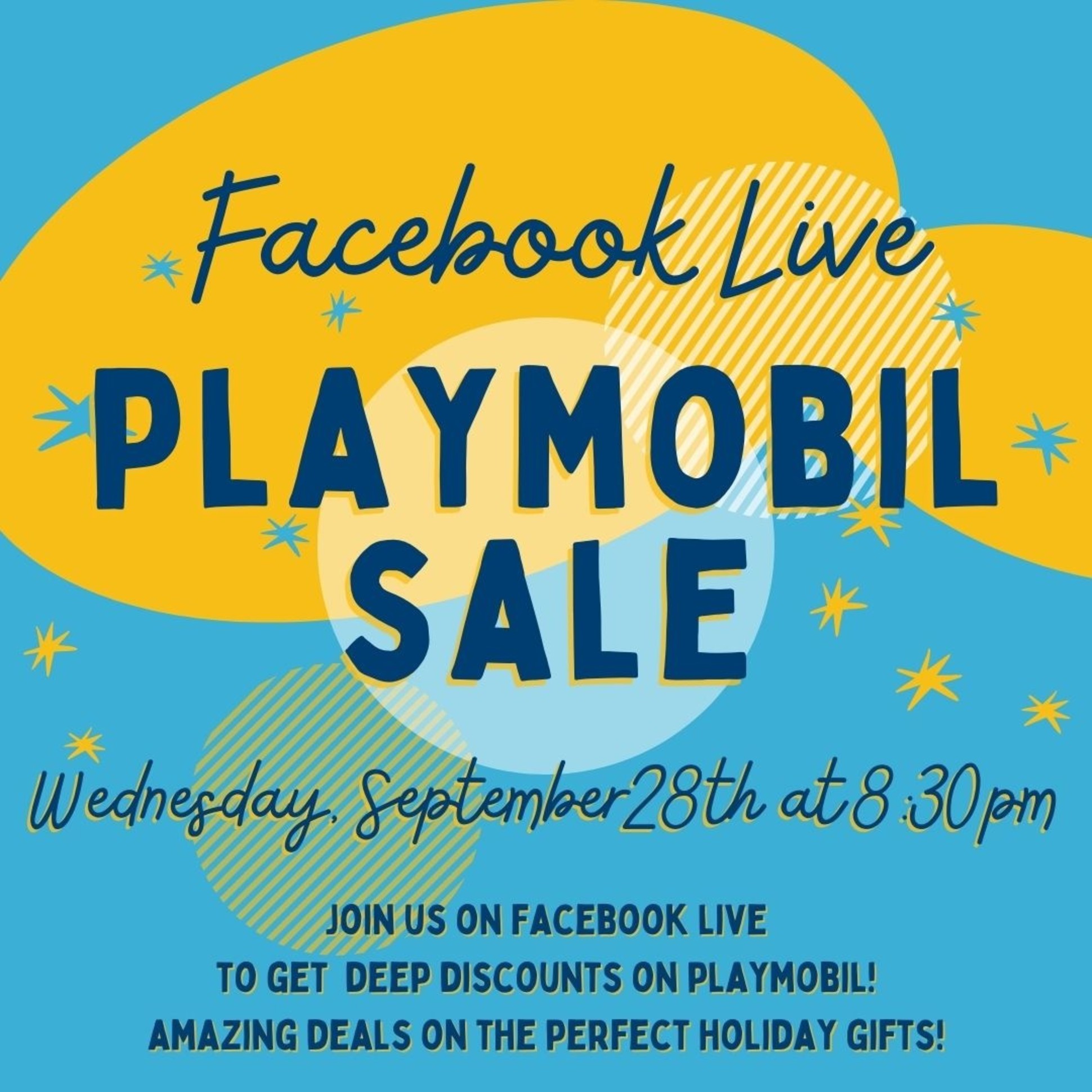 Our last Facebook Live was so much fun, we had to do it again! This time it’s all about some deep discounts on PLAYMOBIL! Join us Wednesday, 9/28 at 8:30pm!