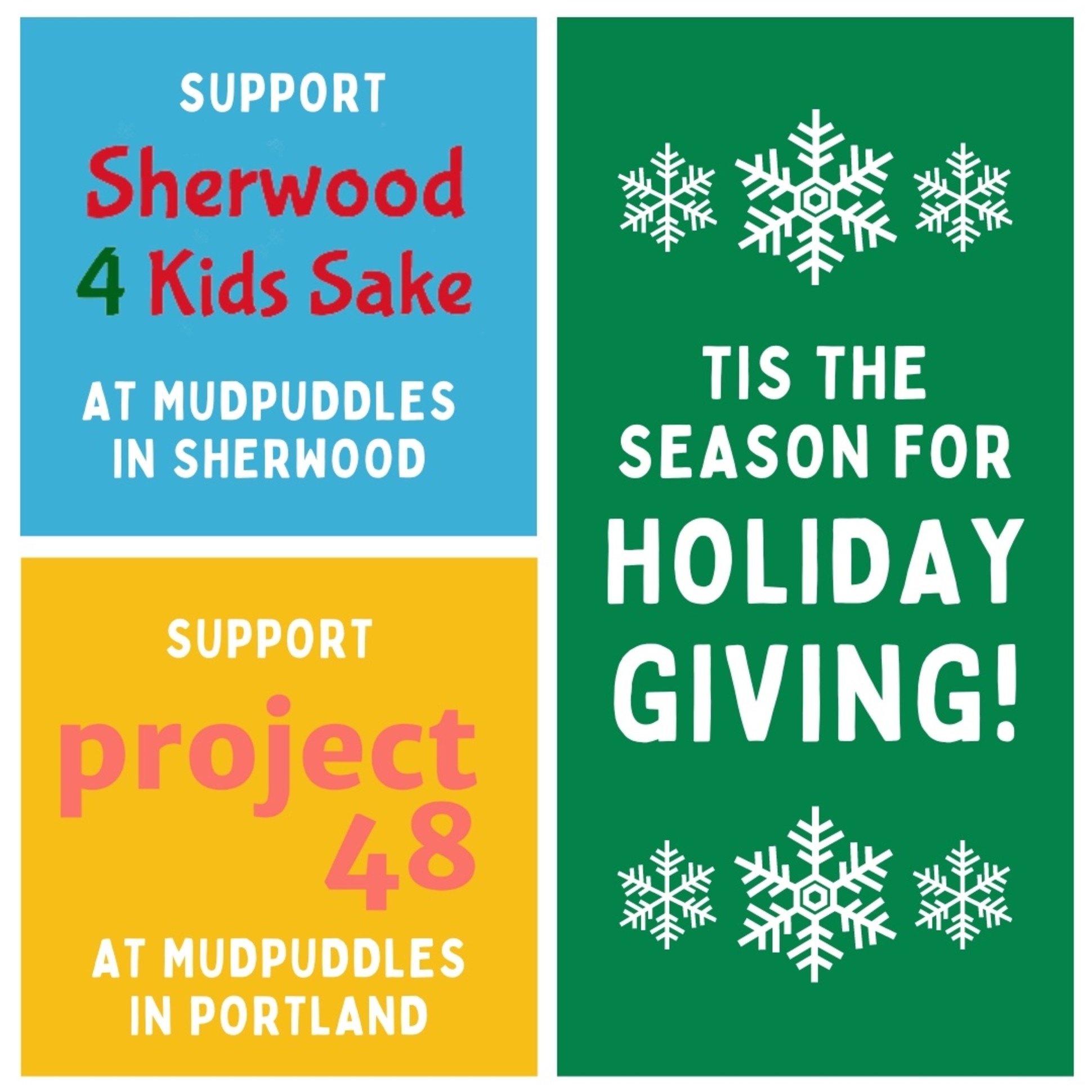 Visit MudPuddles in Sherwood to pull a tag from our giving tree. All of your toy donations will make a difference to a local child this holiday season. Visit the Sherwood 4 Kids Sake website to find out more.