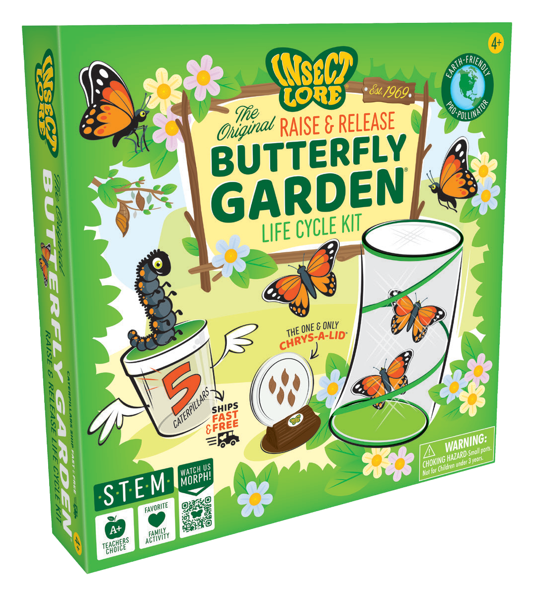 The whole family will want to see this! Fuzzy caterpillars transform to chrysalides, then to Painted Lady butterflies with the magic of metamorphosis. Don't worry, this kit does not contain live insects, but includes a voucher, to redeem at your convenience, for 5 baby caterpillars and all the food they need. Then watch as the caterpillars grow in the protective, reusable pop-up 12 in. tall habitat, to be let go as pollinators after emerging from their cocoons. An up-close garden of transformation. Fascinating - and beautiful.