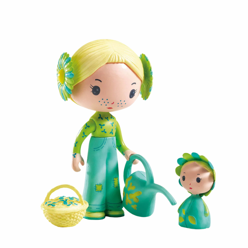 Flore wanders through the Tinyly world with flowers tucked in her hair, basket and watering can in hand, always joined by her loyal friend Bloom. Together they bring countryside charm to every adventure—whether displayed, collected, or whisked into magical stories waiting to be told.