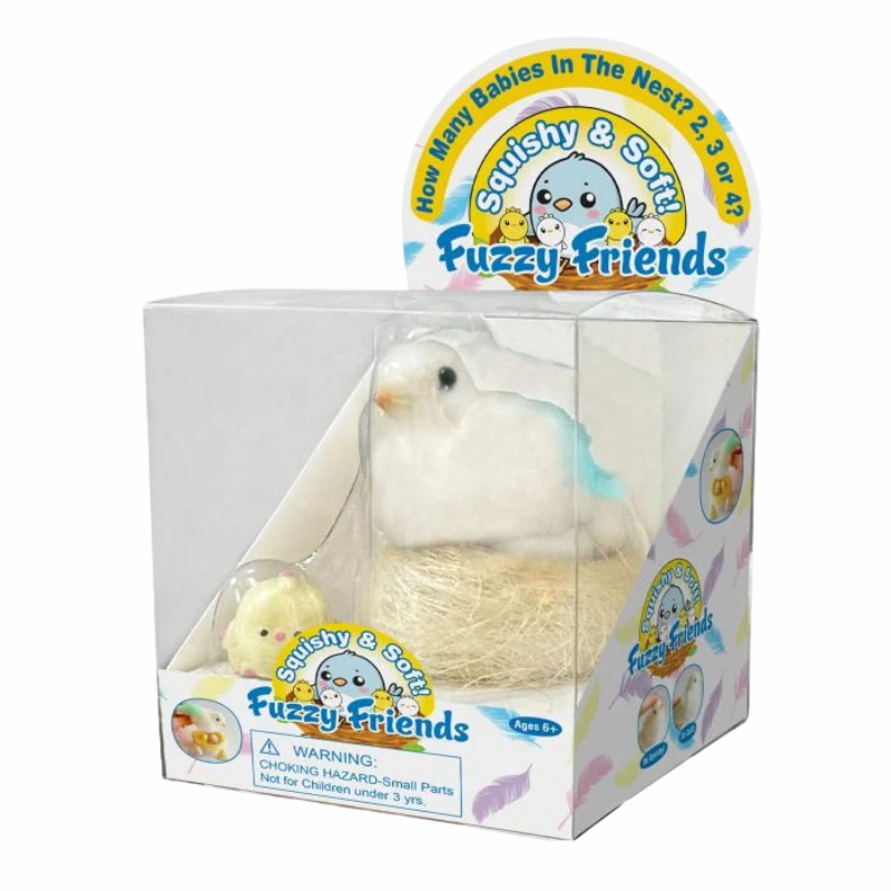 Meet the squishy songbird who loves surprises! Give it a squeeze, lift its cozy nest, and—oh!—discover a hidden family of baby birdiez waiting inside. With soft flocked feathers for extra‑fun feel, this cheerful little nest makes springtime gifting a playful delight, perfect for Easter baskets or anytime smiles.