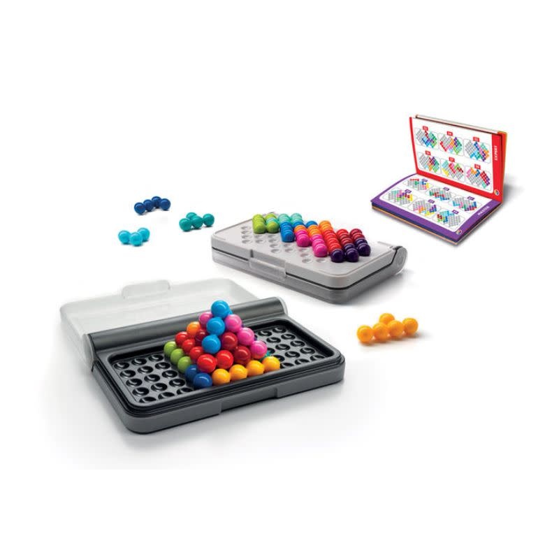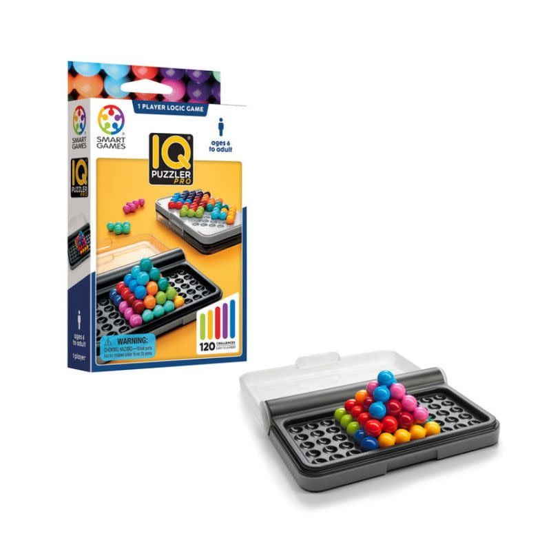 Multiple levels of brain teasing fun! SmartGames IQ-Puzzler Pro features 120 challenges in three playing modes, including both 2D and 3D challenges! The top of the game board features a grid for 2D challenges and a separate grid for 3D pyramid challenges, while the bottom of the board features a completely different 2D challenge grid. All in the same compact, portable travel case.
